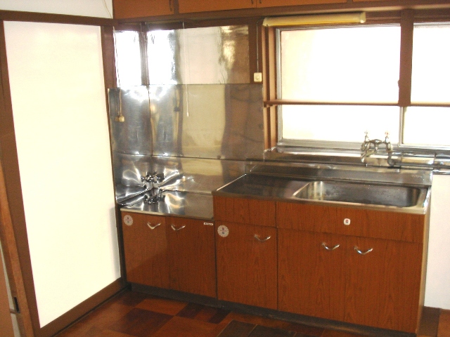 いよいよキッチン。 水周りは入居者の心象に影響が大きいハズだ。 給湯の工事だけしてもらってある。 まずは流し台とガス台をどかす。 そして清掃。 幸いにしてゴキブリ等は見当たらない。 しかしホコリは多い。 掃除機と雑巾その他あらゆるお掃除グッズを使い汚れと格闘。 書けることはあまりない。 つまり普通に大掃除をしただけのことなのだ。 でも、我が家でもここまでの掃除はしたことがない。 というくらいに丁寧にやった。 掃除が済めば、その後の作業は気分が楽になる。 吊り戸棚を塗る。 換気扇を掃除 (後日、気が変わって新品を取り付けた)。 天井のクロスが一部めくれている。 天井も壁紙を貼ることにした。 脚立に乗り、頭からすっぽり壁紙をかぶり、天井へ一気に撫で付ける。 が端から垂れ下がって剥がれて落ちてしまう。 やり方が違うのだろうかと悩みながら、何度もやり直す (後日、劇的ビフォーアフターで見たら、天井の壁紙貼りは手際が大事みたいだ)。 翌日、子供も動員して再度チャレンジ。 脚立に乗せて座らせて、「しっかり押えてろ」と命じてから、撫で刷毛で貼り付けていく。 「手が疲れた」という子供を「ガンバレ」と励ましながらなんとか貼り終えた。 「おこづかいをやる」と言ったら喜んで、「もっと貼りたい」と言っている。 現金な奴だ。 キッチンと隣の6畳を、 続きのLDKとしてカーペットでも敷いて使うのがお勧めだ。 火災報知器、蛍光灯を取り付ける。 ボロ家には違いないが、 あばら家だったものが徐々に住める部屋になってきた。 浴室