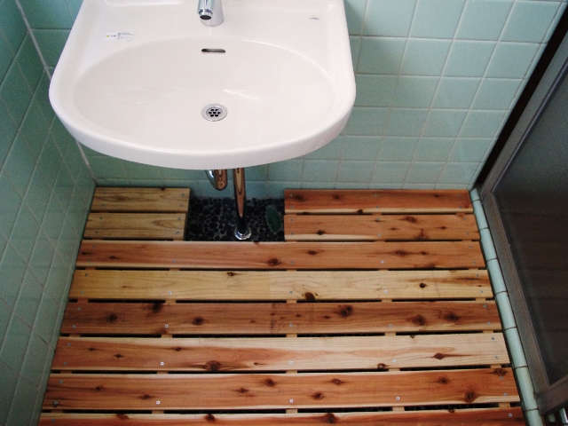 浴室。窓枠がシロアリに食われている。 浴槽は交換してもらった。洗面台もちょっとだけいいのにした。 少なくともそれに見合う出来にしなければ。 腐った木を除去する。 処置はしてあるのでアリはいない。 ボロボロと簡単に取れる… と思ったが、 奥の方まで残さず取り除くのはナカナカ苦労する。 最後は掃除機でかけらも残さずやっつけた。 新しい木をあてがう為に、端面を整形する。 ノミと彫刻刀を駆使し形を整える。 次に木片を削って貼り付けていく。 凸凹や隙間をパテで塞ぎ、やっと下地が完成。 角材でもと通りに窓枠を作り、我ながらうまく出来たと満足する。 鏡と照明を外し、壁と天井と作り直した窓枠を塗る。 また天井塗りだ。 新しい浴槽を汚さないように養生し、真っ白な浴室にするべく奮闘。 液ダレ防止のタオルを巻いても、油断すると刷毛からぽたぽた塗料が落ちてくる。 頭も顔も服もすっかり汚れてしまった。 タイルに落ちた塗料を拭き取り、目地を白く、照明を清掃し、鏡を戻す。 最後に新しい白いブラインドを取り付けた。 廊下、玄関、と片付けて1階は終了。 |